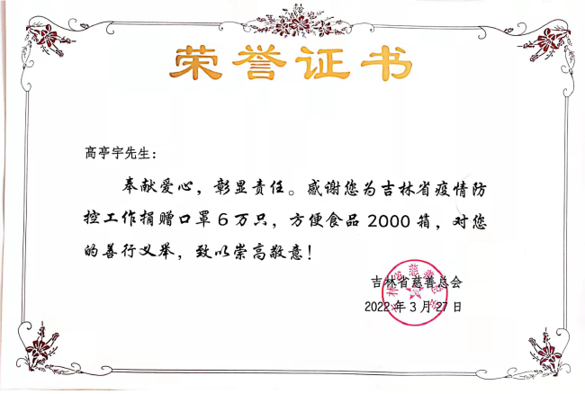 这一次,高亭宇以个人名义向家乡黑龙江和疫情最为严重的吉林两省的慈善总会进行了定向捐赠,他这一次所捐赠的3000箱方便面和90000只医用口罩将用于医护人员和相关人员的防疫保障,助力一线抗疫工作。