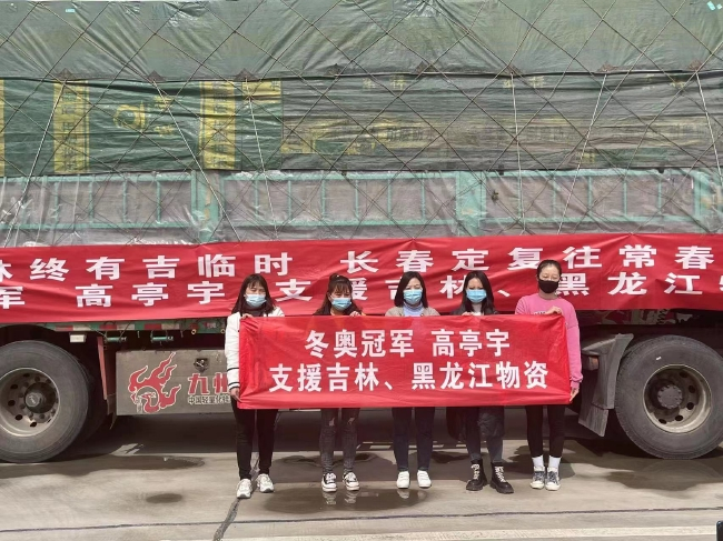 28日上午,一辆辆满载着方便面、医用口罩等物资的大货车分别抵达吉林和黑龙江,近期连续有一批又一批的来自全国各地的物资运输车陆续抵达东北涉疫区域,但是今天这一批物资运输车却有些许的特别之处,这一批物资运输车所运送的是冬奥速度滑冰冠军高亭宇所捐赠的物资,三天前从河南出发,经过3天的长途跋涉,终于抵达目的地。 车上的物资包装箱上写满了“黑龙江加油”“吉林终有吉临时,长春定复往常春”“最可爱的人辛苦了”等一系列暖心的话语,足以见得高亭宇的良苦用心。