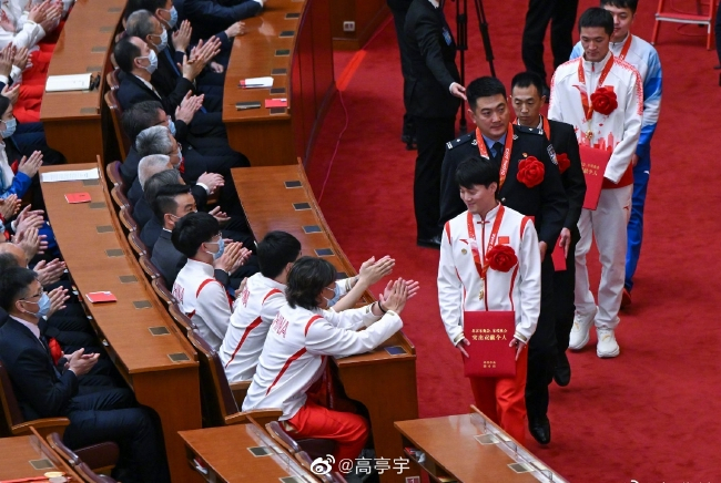 4月8日上午,北京冬奥会、冬残奥会总结表彰大会在人民大会堂隆重举行。速度滑冰冠军高亭宇在个人微博中发布了他的感受。