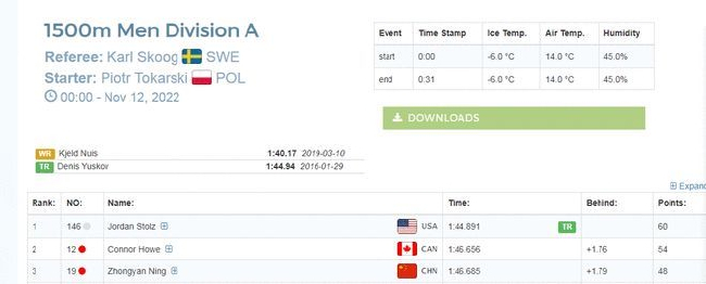 2022-23赛季速度滑冰世界杯首站比赛11月11日在挪威拉开帷幕,首日争夺中国选手宁忠岩夺得男子1500米铜牌,女子500米金京珠和张丽娜分列第14和18,韩梅排在女子3000米第13,男子团体追逐赛中国队获得第七。