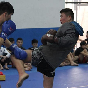 在训练的最后阶段,这次同来参赛的中国拳手——练泰拳的谭小峰帮助王少华进行了大约半小时的训练,主要是告诉他怎么面对泰拳的搂抱防膝。但是这种临时抱佛脚的做法,是否能起作用,就要看23日的比赛才能知晓了。