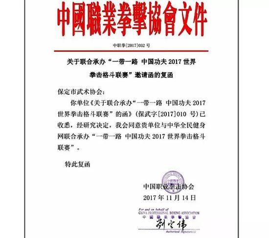 “中国职业拳击协会”回函文件