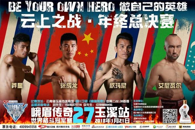 1月20日,《峨眉传奇》27·云上之战暨年终总决赛将在玉溪打响,本次年终总决赛可谓大咖云集,新泰拳天王耀威猜、“中亚雄狮”艾尼瓦尔、“百战拳王”欣玛尼、ISK自由搏击世界金腰带和WMTA世界泰拳金腰带阿尔门·佩托奥等国际一线的格斗王者群英汇至。