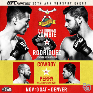 UFC中国讯 UFC Fight Night 139将于北京时间11月11日在美国丹佛举行,同时这也将是UFC成立25周年的庆典赛事。本次赛事一共包括了6场主赛和6场副赛。