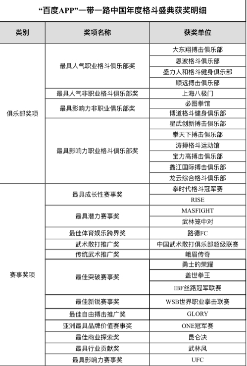 附:“百度APP”一带一年度格斗盛典完整获奖名单