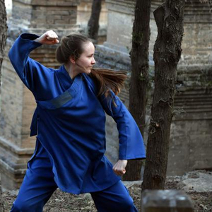 一座古朴庄严的佛塔下,五名武者整齐列队。起手式后,他们跟着口令马步冲拳、凌空弹踢,一套少林长拳打得虎虎生威,领头的是一位俄罗斯姑娘——斯韦特兰娜·弗谢米尔诺娃。