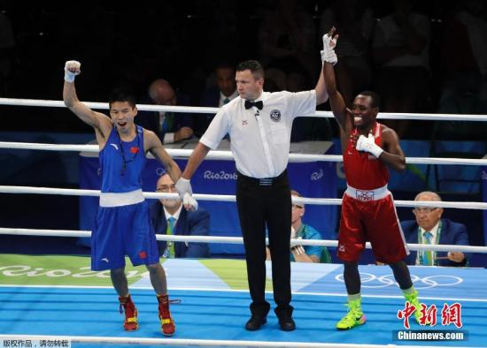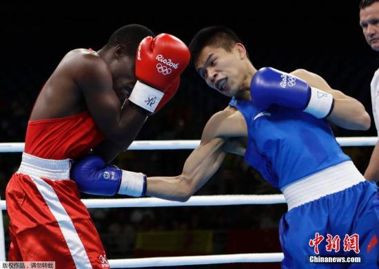 资料图:里约奥运会拳击比赛第一轮男子49公斤级的比赛中,中国选手吕斌激战3个回合,输给了35岁的肯尼亚老将皮特姆盖,未能成功晋级下一轮。
