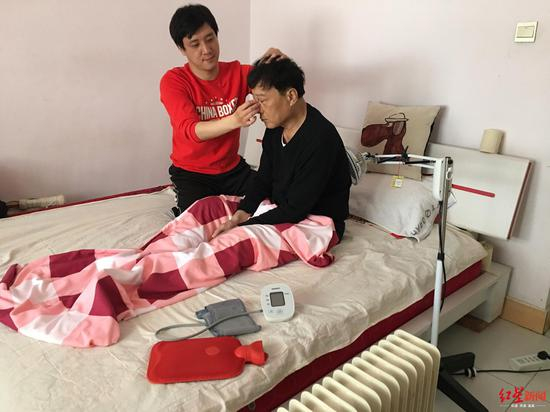 在过去的一年多时间里,汪宝柱每周都要去医院透析治疗3次,以此来延缓病情、保住生命。小时候是父亲给汪强按摩,帮助他治病,现在汪强用从父亲那里学会的方法给父亲按摩,“父亲生病的这一年多,我每天都要给他做按摩,每次至少两个小时。”