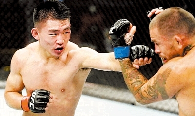 本报讯(记者谢晨)在5月17日于美国佛罗里达举行的“UFC(终极格斗冠军赛)格斗之夜”男子雏量级(125磅至135磅)比赛中,22岁的中国选手宋亚东三回合后以点数击败此前五连胜的厄瓜多尔选手马龙·维拉。宋亚东的UFC战绩达到5胜1平,而6场不败也追平了韩国选手金东炫保持的亚洲选手不败纪录。