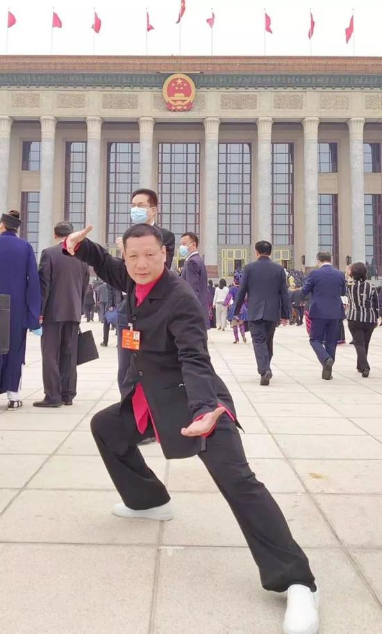政协委员周建平大会堂外打太极 建议太极拳进奥运
