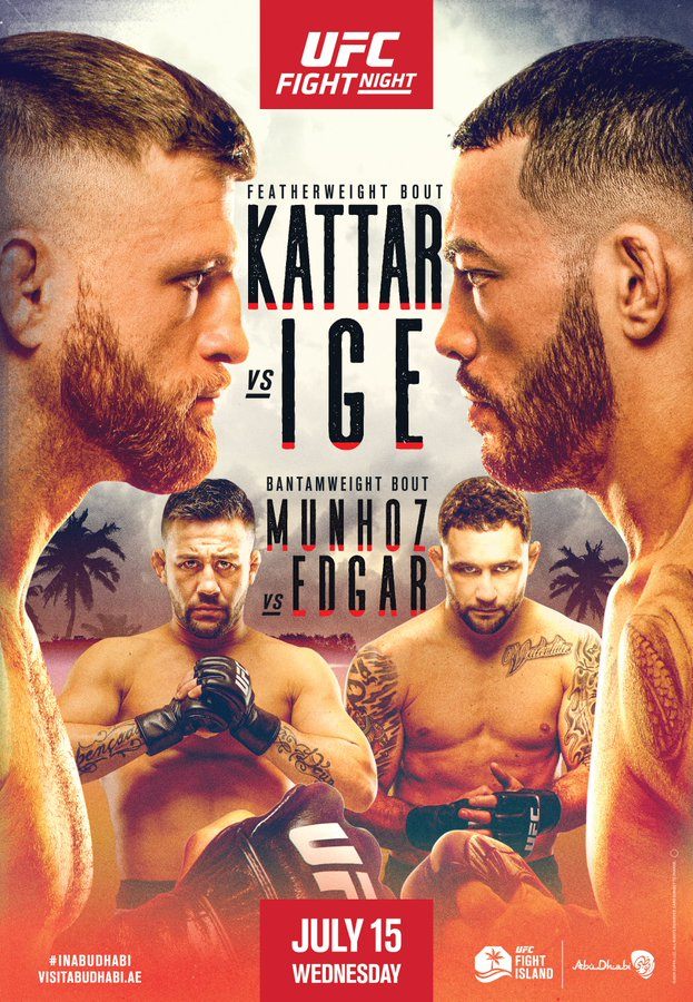 UFC中国讯 UFC on ESPN 13:凯塔尔 VS 伊盖将于北京时间7月16日在阿布扎比亚斯岛举行。本次赛事一共包括了5场主赛和7场副赛共计12场比赛。