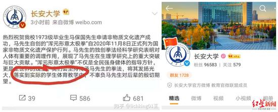 近日,网上流传的一张疑似长安大学微博发布的一篇文章,其中显示祝贺该校1973级“毕业生”马保国“自创的‘浑元形意太极拳’自2020年11月8日正式列为国家非物质文化遗产保护行列”,文中还称会将马保国的拳法“落实到实际的学生体育教学中”。