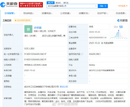 天眼查APP显示,10月22日,武汉五连鞭建材有限公司成立;11月23日,海南耗子尾汁文化传媒有限公司成立;此外,“耗子尾汁”及“马保国”也被申请注册商标。
