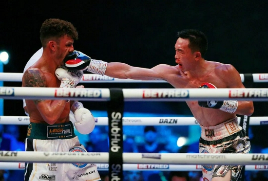 进入比赛后半阶段,随着徐灿体能逐渐下降,一直游走保存体能的英国人越打越好。出拳落点精准,力道更足。