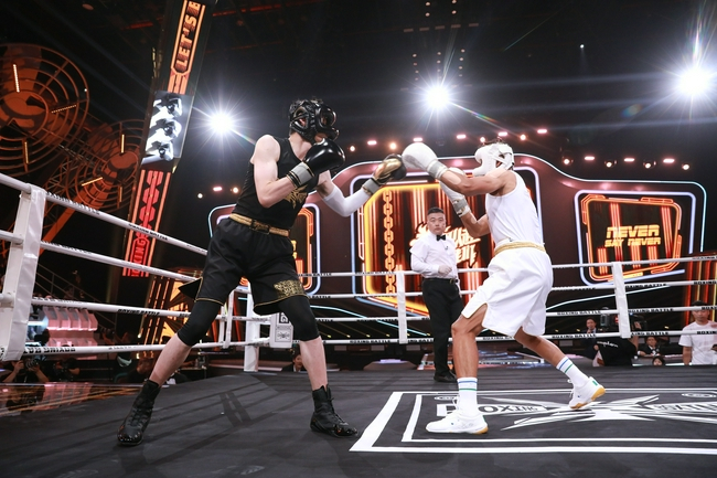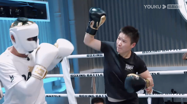 结果,两名前世界级的羽毛球选手放弃了隔网扣杀,而是戴上拳套,走进擂台、挥拳“互殴”了3回合。