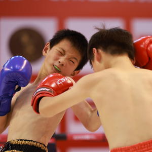 37公斤级的刘译天来自河北保定热度俱乐部,与来自北京星虎俱乐部的李国豪对抗,李国豪在第一场TKO获胜。