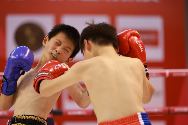 比赛渐入佳境,接下来是男子30公斤级的决逐。河北雄安侯爵俱乐部的金炫安,与山东聊城正武搏击俱乐部的谷明正一交手,就进入白热化。谷明正最终锁定胜局。