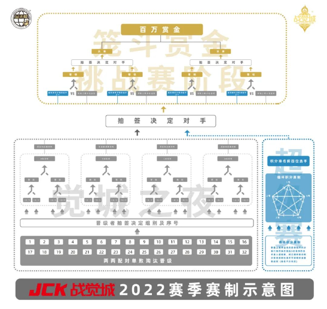 第二阶段:2022年10月29日-2023年1月23日开启JCK战觉城笼斗赏金挑战赛(单级别100万元人民币赏金争夺)