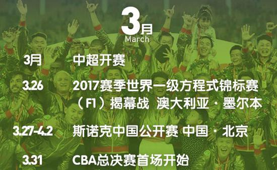 3月中超揭幕、F1揭幕,在万物复苏的春天冰雪赛事也渐入高潮,短道速滑世锦赛、冰壶世锦赛、花样滑冰世锦赛都陆续上演。斯诺克中国公开赛也将在月底上演,这里曾是丁俊晖走向顶尖的起步之地,今年他又将有怎样的表现。CBA也将展开最后的角逐,谁会是今年的王者?笼罩在暴力阴霾下的中国篮球能否还篮球本来面目。