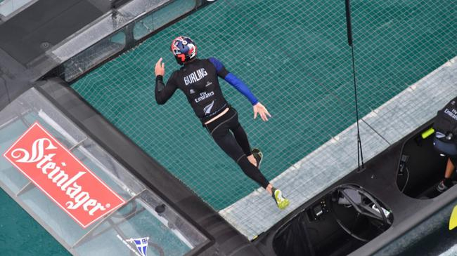 第四场比赛中,在几乎同时出发后,奥特里奇带领瑞典月神队迅速占据了有利位置,将新西兰酋长队的船挤到了迎风向。他们连续第四次率先通过了一号标记,穿越旗门时瑞典队领先5秒,新西兰队紧随其后向他们持续施压。但在第一个迎风段,瑞典队阻挡住了对手的进攻,并取得了较大的领先优势。最后一个迎风段,本来领先近200米的瑞典队转向失误,导致新西兰队迫近了距离。随后,月神队的船飞离水面并重重摔回水中,新西兰队欲借机超越,但这次瑞典队及时稳住了阵脚,以15秒的领先优势赢下比赛,将总比分扳成2-2平。