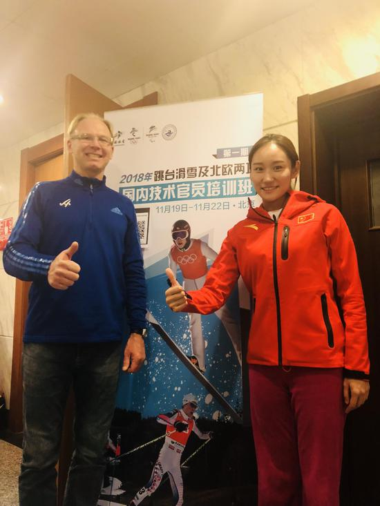 对于跨项工作朱丹表示艺术体操与北欧两项运动特点相差较大,艺术体操是艺术与技术的紧密结合,是一项观赏性较强的运动,而北欧两项则即需要运动员具备良好的爆发力,又需要有非常强的肌耐力,对运动员的身体机能要求非常高,是一项竞技性非常强的冬季运动。学习期间最困难的部分还是对英语专业词语的陌生以及对项目的了解,在培训第一天的自我介绍环节朱丹用英文第一个介绍了自己从事的职业以及对服务冬奥的期盼,也让专家对她有了很好的印象,专家也表示朱丹可以参与到跳台滑雪比赛的起始部分管理工作,对此朱丹表示非常感谢专家给予的指点和规划,在今后的学习中会更加努力的提高专业英语水平,以及会做一些跳台滑雪和北欧两项相关的技术探究。