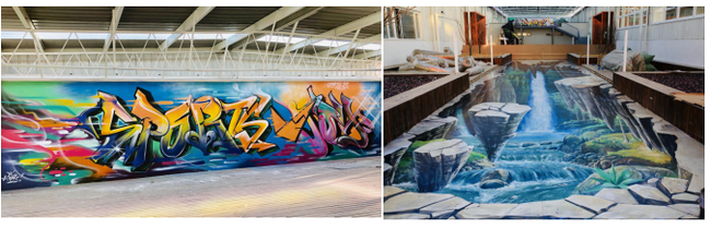一片活力的橙色外立面,处处夺人眼球的墙面涂鸦,让人跃跃欲试的3D彩绘,晚上,知名灯光师设计的灯光景观让人目眩神迷,如果不知情,可能你会以为自己来到了国外的街头艺术街区——年轻人扎堆且时髦前卫的地方。而这就是久悦体育顺义后沙峪场馆,一个用心打造的与新一代年轻人对话的窗口。