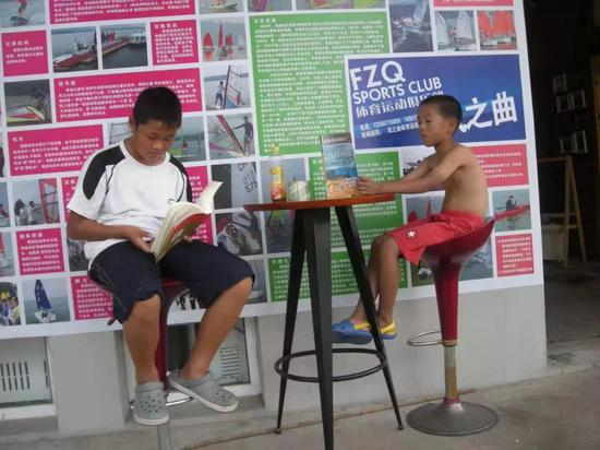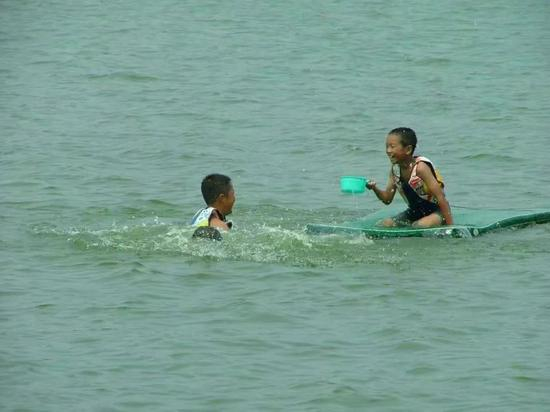 ▲有风下水玩船,没风岸上看书(右一苏逸康)