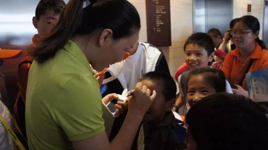 ▲2011年帆船名人殷剑在苏逸康额头签下名字
