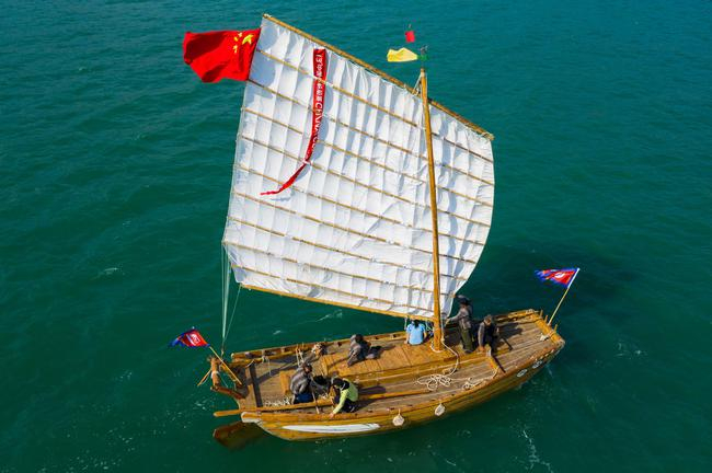 来自辽宁省盘锦市的门锭船“辽河口号”的桅杆上写着7个字——大将军八面威风,分别用赤橙黄绿青蓝紫七色进行涂装,“辽河口号”建造人张兴华说道:“船就像大将军一样,能掌控八面风,带来充足的力量,盼个好兆头。”建造“辽河口号”的木材都是经过精挑细选的,工艺也得到改善升级,“这艘船我们保留了最古老的传统技艺,也加入了这三十多年来我们的研究成果,改良水密隔舱技术、船板黏合剂等,让木帆船身更安全、更耐用。”