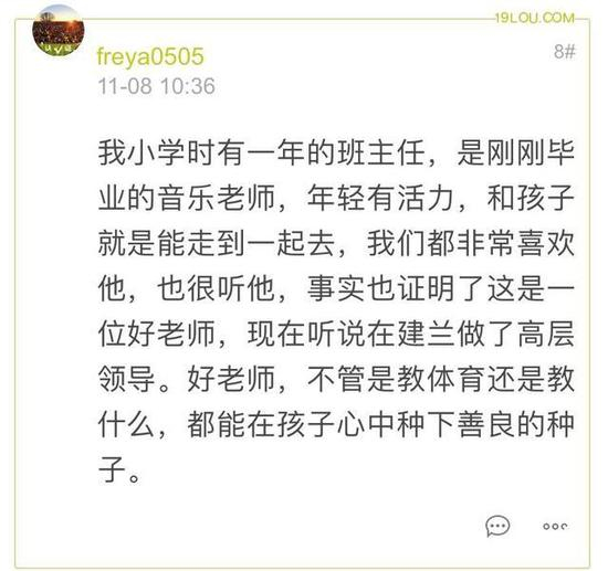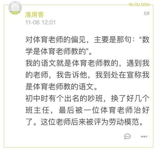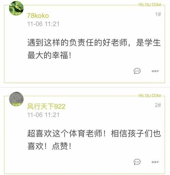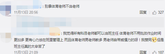但是也有一些家长表示,体育老师课业压力小,就能有更多时间和精力放在孩子们身上,而且还会更有耐心,不是坏事。