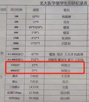 △ 钟南山在北京医学院创下的运动纪录。