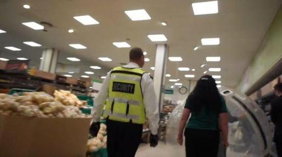 ▲超市工作人员将该女子赶出了超市