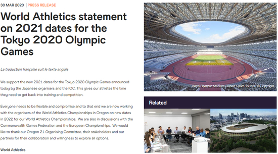几乎在同一时刻,国际田联在自己的官网宣布,原定于 2021 年举行的尤金田径世锦赛推迟到 2022 年举行。此前,国际泳联也表示,将与 2021 年世界游泳锦标赛的承办方日本福冈紧密合作,寻求比赛择期进行的可能性。而原定于 8 月 8 日在成都举行的世界大学生运动会因为赛期与东京奥运会存在重叠,因此大概率将会推迟举行。