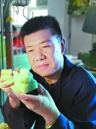 “我从小喜爱绘画,一心想从事与它相关的行业。初中毕业的那年暑假,有一次读《北京晚报》,看到中缝刊登‘北京玉器厂技工学校招生简章’的消息。当时第一反应就是我得抓住这个机会。那年报名参加考试的大概有1000人,经过层层选拔,最后只有26人通过,我是其中之一,就这样我成为北京玉器厂技工学校第二届学员。”张铁成说。