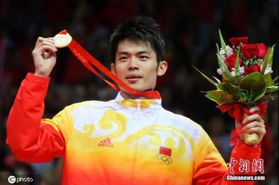2008年8月17日,2008北京奥运会羽毛球男单决赛,林丹登上最高领奖台。图片来源:ICphoto