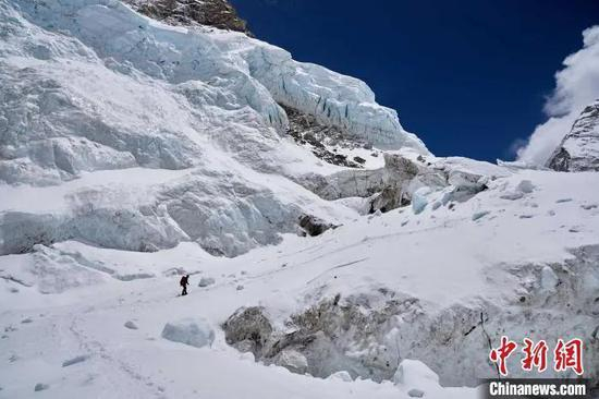 2018年5月18日 第二次攀登珠穆朗玛峰的孙义全前往C3营地途中。孙义全工作室 供图