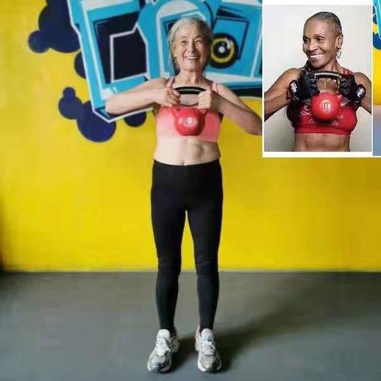 就这样,内心充满了不确定的陈奶奶在刘教练的指导下,开始站举壶铃、热浪战绳、直腿硬拉……一项项专业训练,成了她每天的必修课。