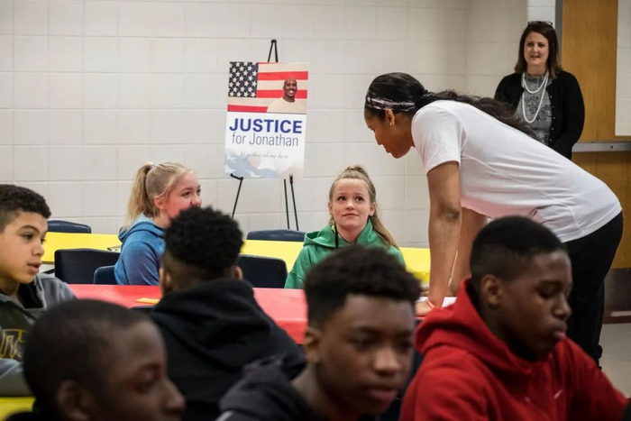 摩尔在接受ESPN的杰里米-沙普采访时说:“美国有很多黑人,他们经历了一个与主流美国国旗所象征的不同的美国。黑人更容易受到伤害,我们的司法系统在历史上一直是基于种族主义精神运作的。”