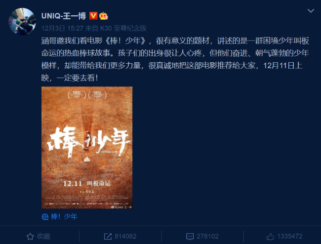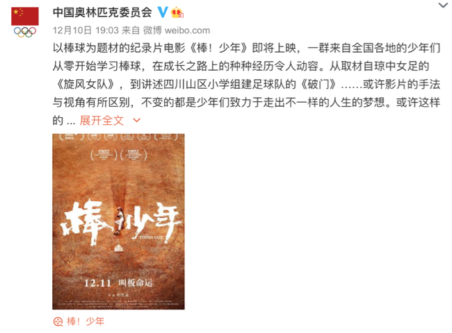 12月11日,高分体育电影《棒!少年》正式登陆全国院线公映。该片斩获2020年第14届FIRST青年影展“最佳纪录片”和“观众选择荣誉”两项大奖,当前豆瓣评分8.7分,是目前2020年度豆瓣最高分国产片。