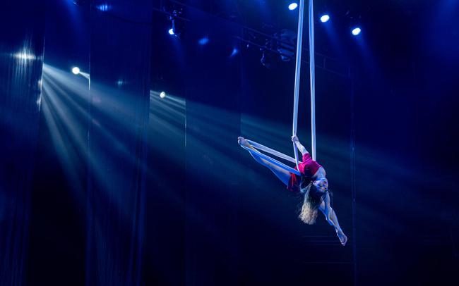 吊床舞:通过吊床布进行攀爬、翻滚、缠绕和拉伸,以及技巧下坠串联来完成系列空中技巧;同时根据编排需要结合舞蹈元素进行有序编排;根据作品需要利用升降器来高度调整以达到作品表演效果。