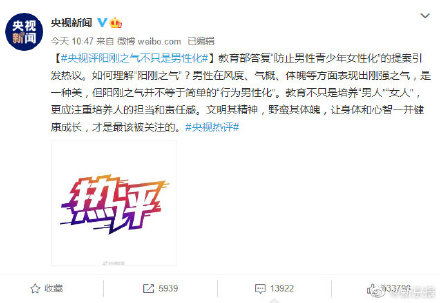 教育部答复“防止男性青少年女性化”的提案引发热议。如何理解“阳刚之气”?男性在风度、气概、体魄等方面表现出刚强之气,是一种美,但阳刚之气并不等于简单的“行为男性化”。教育不只是培养“男人”“女人”,更应注重培养人的担当和责任感。文明其精神,野蛮其体魄,让身体和心智一并健康成长,才是最该被关注的。