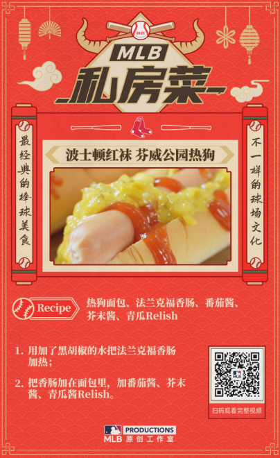 进入2021年,MLB原创内容将进一步加大对棒球文化的挖掘和普及力度,从多个维度展开创新与合作。《MLB私房菜》作为牛年内容矩阵的“开胃菜”,紧贴新春佳节氛围,以美食作为切入点,从球场走向家庭,再一次拉近棒球与普通大众的关系,让棒球成为春节餐桌上的新话题,巧妙地诠释了以“回家”为情感基调的棒球文化内核。