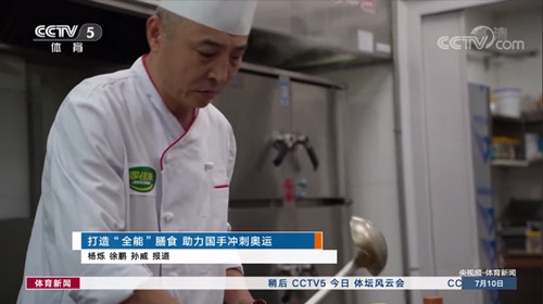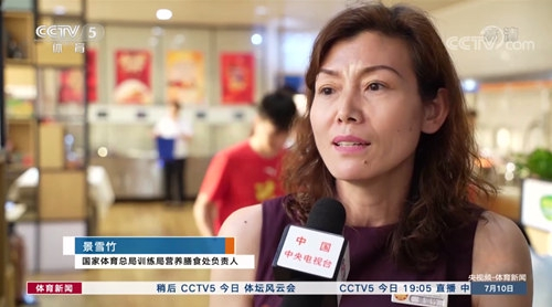 7月10日,中央电视台第五频道《体育新闻》走进体育总局训练局,对营养膳食处的负责人及工作人员进行采访。