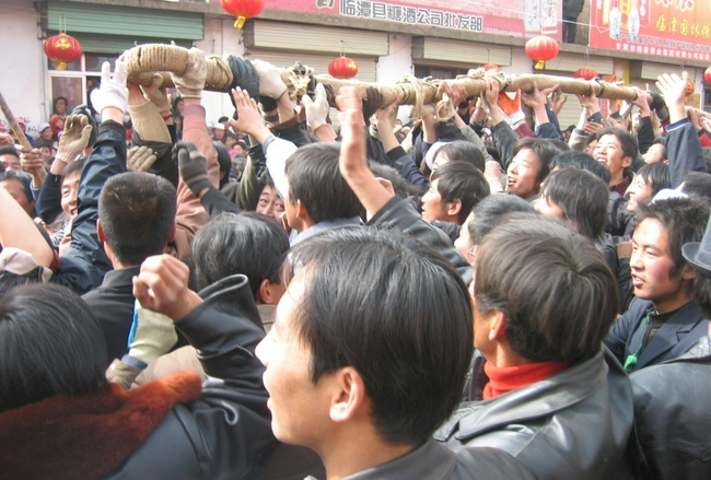 传承发扬。“万人扯绳”,历史传承,非遗项目。万人扯绳赛民俗风格独特。一是赛前祭祀,把绳头、楔子、榔头等扯绳用具拉到城隍庙大殿举行焚香、给绳头挂红等仪式。二是赛前准备,把祭祀过的扯绳用具拉到县城西门主街道沿街摆开,直径8厘米、长达1808米、重约8吨。三是扯绳,由身体彪悍的“连手”带头,以西城门为界,家住上片者扯上绳,住下片者扯下绳,气势壮观,正月十四、十五、十六三晚每晚三局,共九局以决胜负。1958年以前,临潭县每年都举办万人扯绳赛,1959年到1978年期间停办,1979年恢复。2001年,临潭元宵节“万人扯绳活动”以其绳之最重、直径最大、长度最长、人数最多被载入上海大世界基尼斯纪录。先后有甘肃电视台录制电视纪录片《巨龙滚动闹元宵》,《15万人一起扯绳,这场面不震撼都难》等代表性报道,和《甘肃临潭“万人拔河”文化探源》等学术研究文章,保障了活动传承存续。古为今用,临潭人以发展的眼光,将民俗活动和现代运动项目结合在一起,近年来先后举办了包括6届“冶力关杯”中国拔河公开赛、临潭大象拔河(押架)比赛、洮州第618届万人拔河展示赛、甘肃·临潭拔河节在内的多重拔河活动。自被列入省州县三级非遗项目后,2019年,临潭启动“万人扯绳”国家级非物质文化遗产代表性项目申报工作,于2021年被列入第五批国家级非遗名录,成为临潭拔河文化的集中体现。