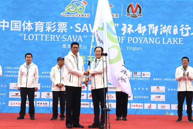 “骑遍神州大地,江西风景独好”。龙虎山位于江西省鹰潭市区西南,距市区16公里,属典型的丹霞地貌,是中国道教发祥地,国家重点风景名胜区。整个景区200多平方公里,源远流长的道教文化,独具特色的碧水丹山和历史悠久的崖墓群构成了龙虎山风景旅游区自然景观和人文景观的“三绝”。江西省体育局党组成员、副局长张祖平,鹰潭市人民政府党组成员、副市长候选人林坤,原江西省体育总会主席、江西省自行车运动联合会主席聂明阮,鹰潭市龙虎山风景名胜区党委书记雷纪文,江西省体育局计划财务处处长吴峰,鹰潭市体育局局长黄顺茂,鹰潭市龙虎山风景名胜区党委副书记、管委会主任王清和,龙虎山旅游集团公司总经理吴任华,鹰潭市龙虎山风景名胜区党委委员、管委会副主任倪爱华,江西省体育发展有限公司董事长沈红斌,惠州萨瓦自行车有限公司总经理杨义伍等参加开幕式并鸣笛发车。