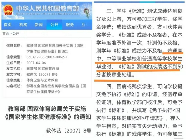 其实“大学体测挂科,拿不到毕业证”并非云南大学首创,而是教育部规定。