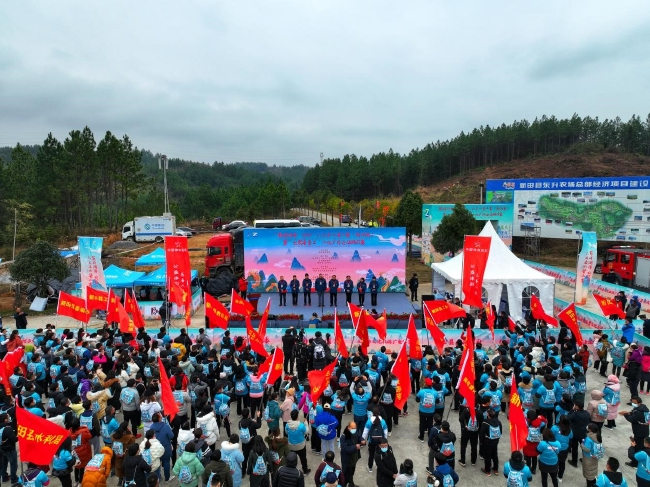 瑶山林海,层峦叠嶂,山水辉映,永州市新田县的冬季静谧幽美,宛若一幅山水田园画,12月27日,“巅峰湖南·2021”六大名山登山赛(新田站)暨“巴图鲁勇士”山地户外运动挑战赛跑进新田,800多名参赛运动员和游客“跃”入画卷,穿梭在森林和田野阡陌中,焕发乡村新生机、新活力!