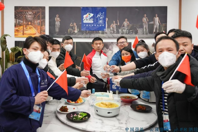 在酒坊不仅为国际友人提供了品尝中国白酒、了解中国文化的好机会,更是缓解了一线赛事服务人员“每逢佳节倍思亲”的思乡之亲。
