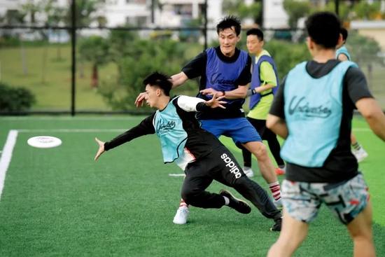 不了解极限飞盘的人,很容易把它与休闲游戏混为一谈。事实上,在极限飞盘比赛中,运动员需要不断跑动“传盘”得分,争夺非常激烈,一场真正的比赛下来,队员的跑动距离通常在10公里左右,堪比一场高水平足球赛。虽然飞盘上手比较快,但如果想要提高技术,一样需要花时间去练习基本功。