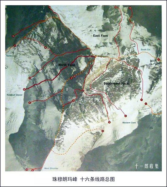 自1953年从南侧首登至今,珠峰共有16条登顶线路。